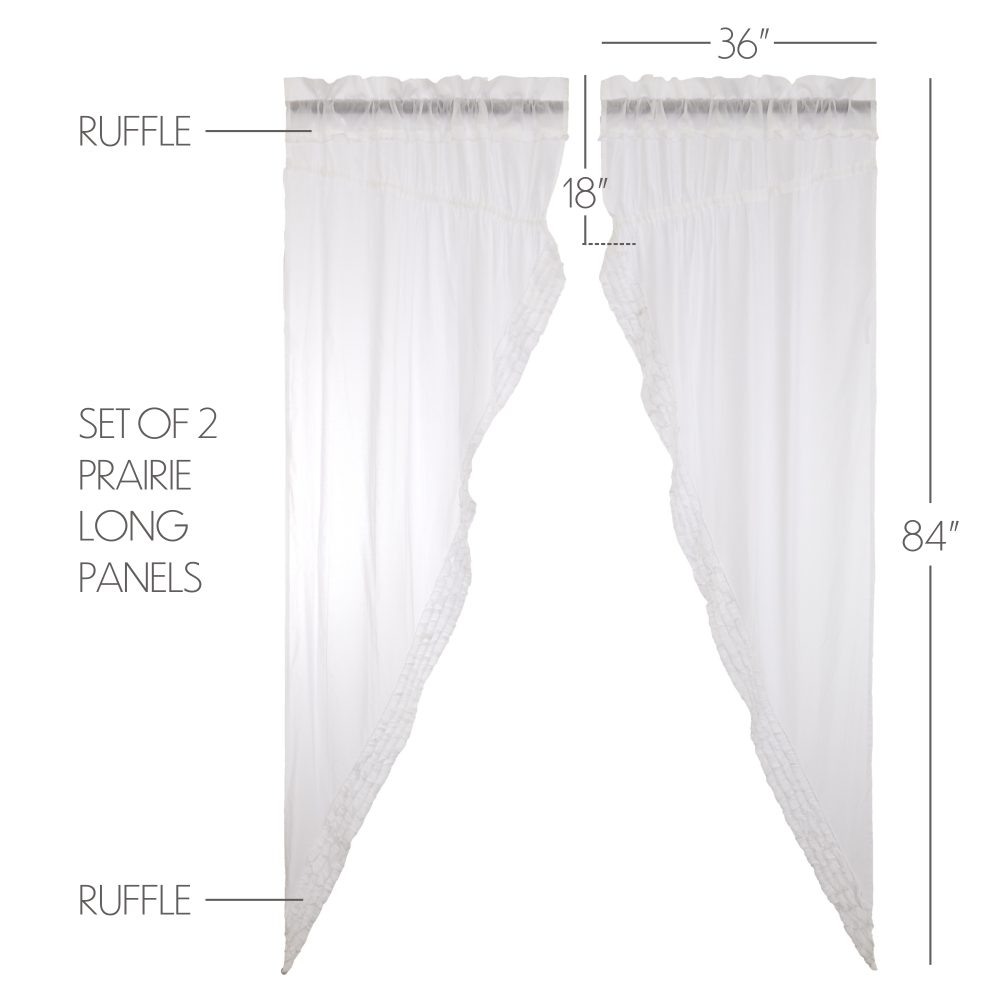 White Ruffled Sheer Prairie Long Panel Set of 2 84x36x18