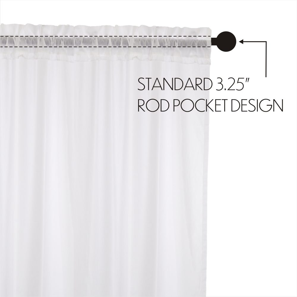 The White Ruffled Sheer Prairie Long Panel Set of 2 focuses on lightweight design. This 84x36x18 curtain's slightly transparent quality provides an airy feel throughout the home. The thin layer of ruffling adds a touch of vintage to the overall farmhouse look of our all-cotton window treatment set. These country curtains include drawstring ties for easy customization. Soft and classy, the impeccable workmanship and pleasing simplicity make a great choice for a variety of decor styles.