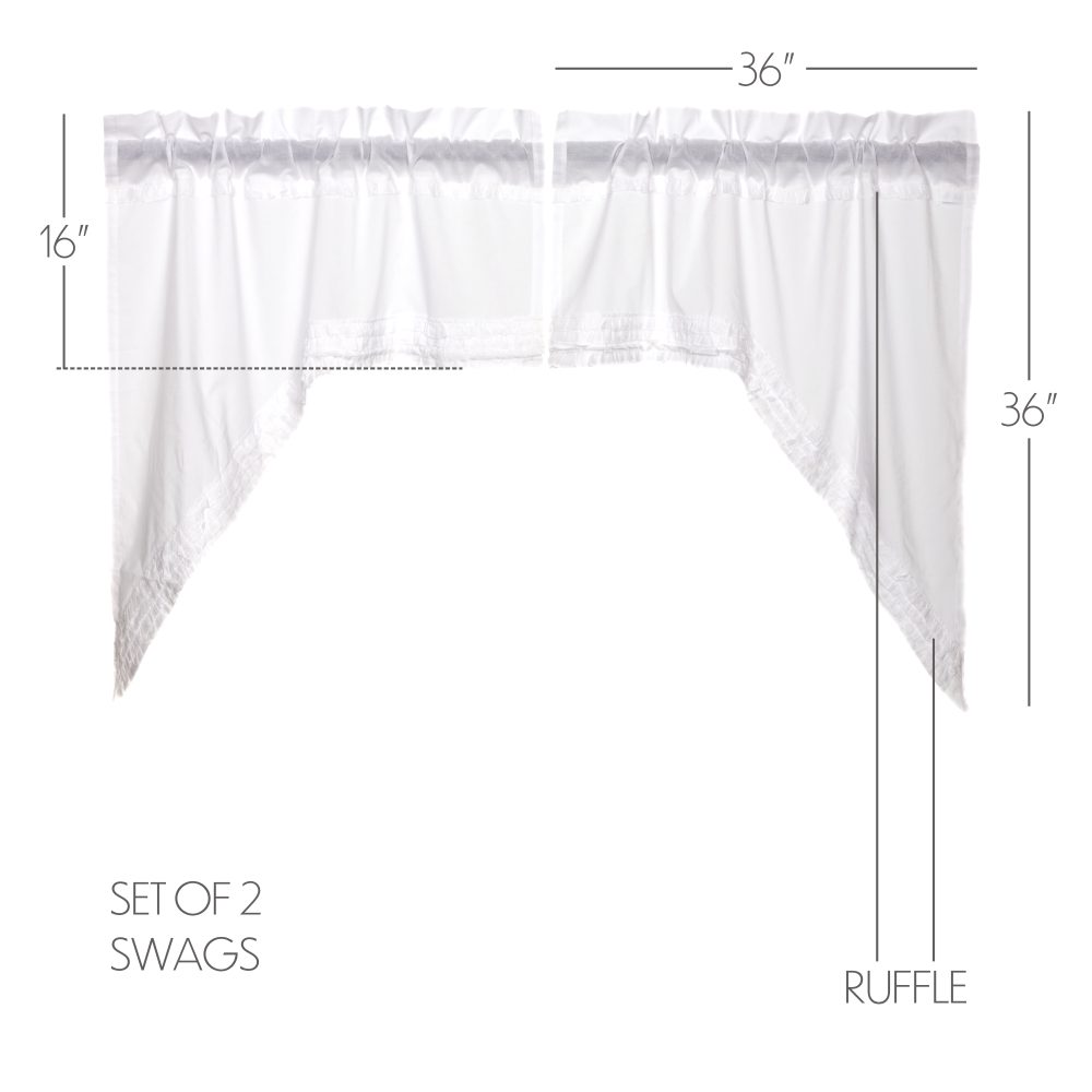 The White Ruffled Sheer Swag Set brings an updated sensibility to farmhouse decor. Expertly crafted of dense and lightweight cambric fabric for a pleasing drape. Farmhouse ruffles complete the look for a touch of rustic romance, perfect for your kitchen or bath area.