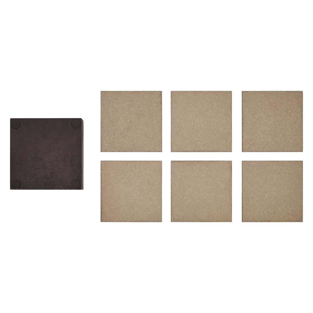 - Convenient Storage: The coasters stack neatly in a matching container, which has an opening on the front for easy access, keeping them organized and accessible when needed.