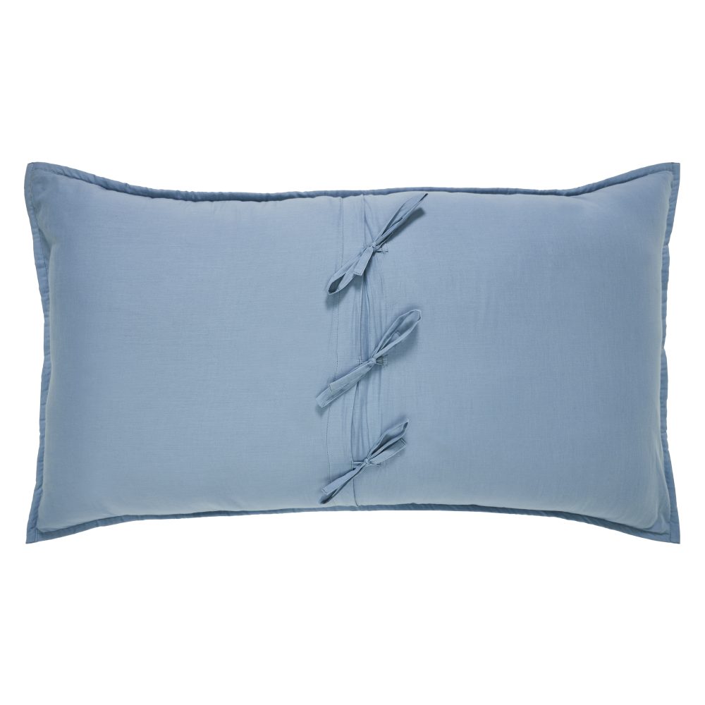 - FARMHOUSE KING SHAM: Includes one 21 by 37 inch King Sham made from 100 percent cotton featuring floral front, contrasting edging and tie-style closures. Reverse in dusty blue.
