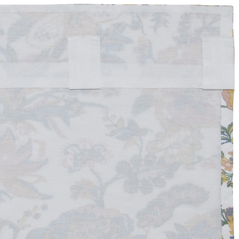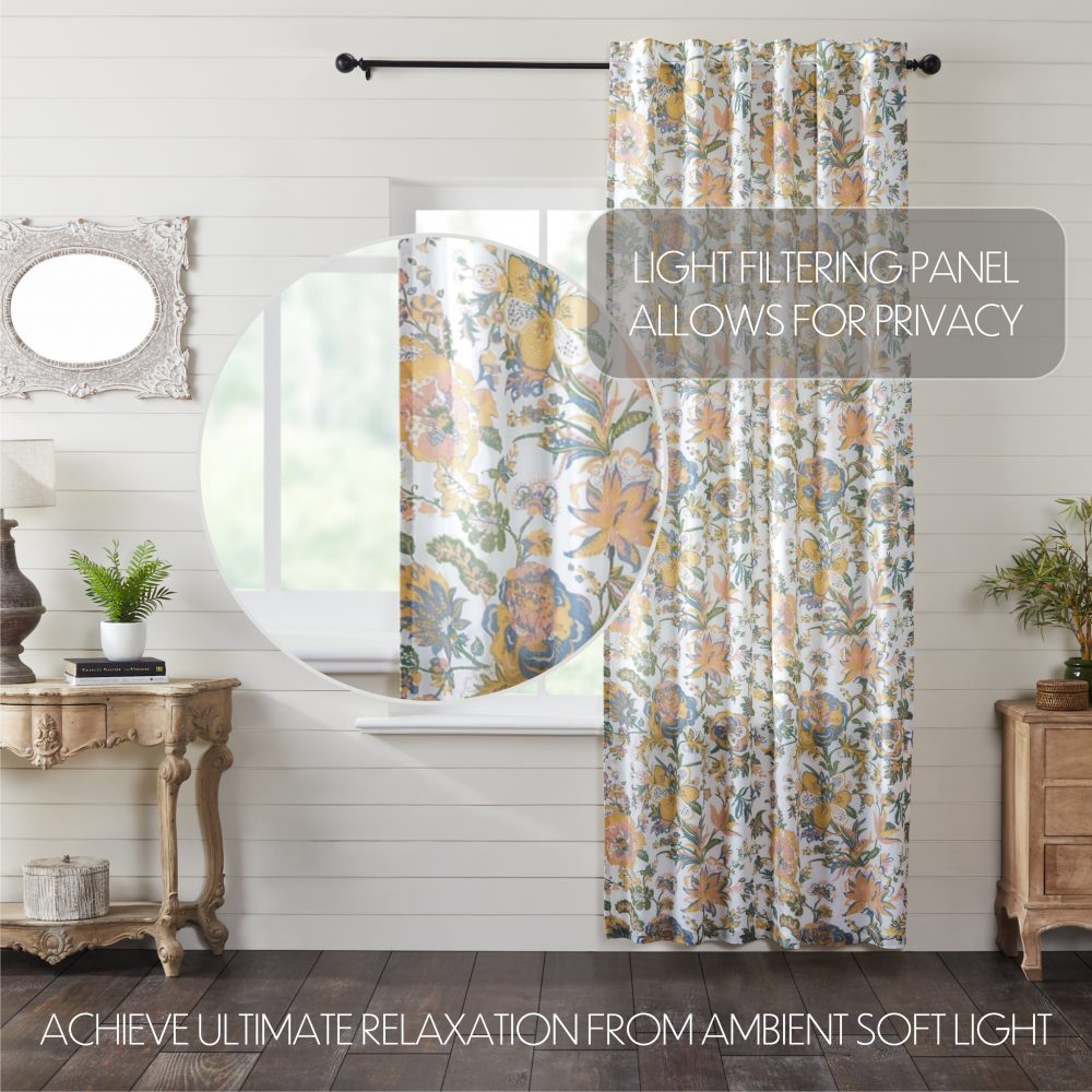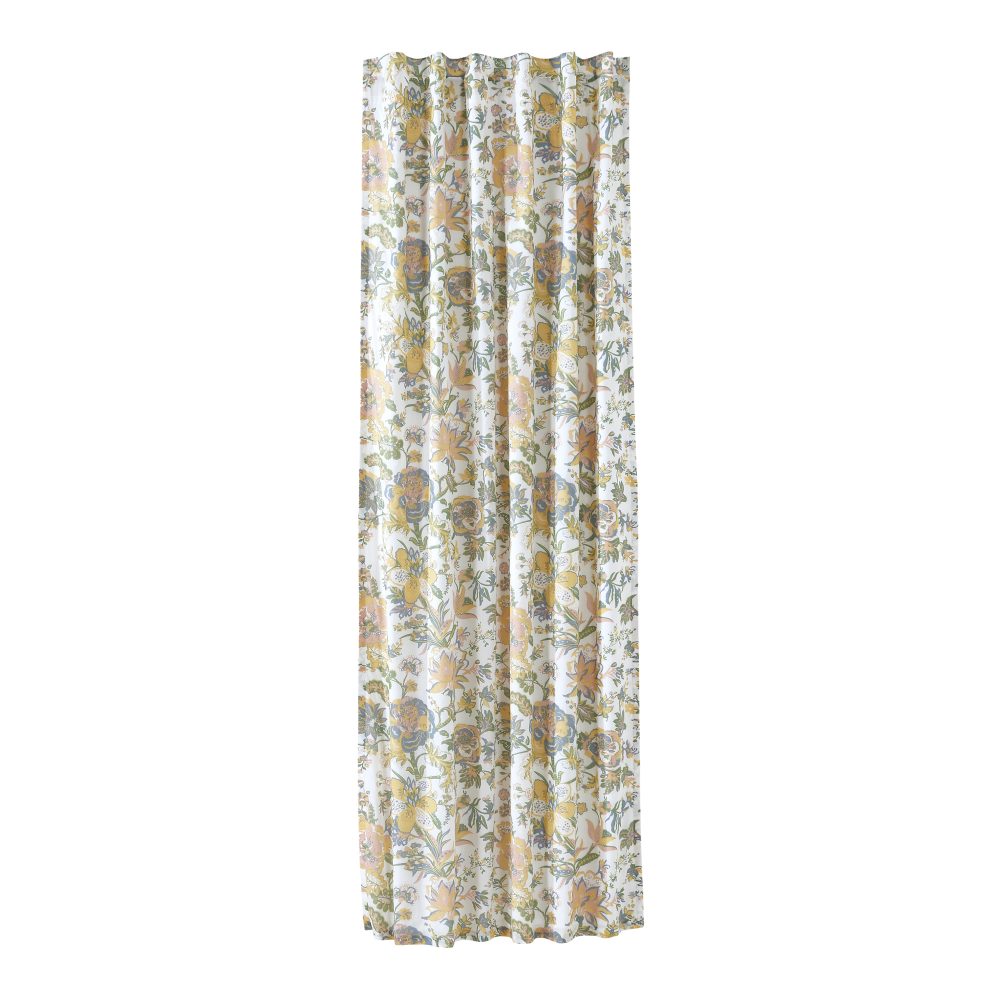 Vintage-inspired floral fabric in antique creme, soft green, and blue. The Wilder Panel 96x50 is a wonderful addition to any feminine vintage country or cottage decor. Features a soft, cotton lining to prevent fading and additional privacy while a rod pocket and loops provide easy hanging options.