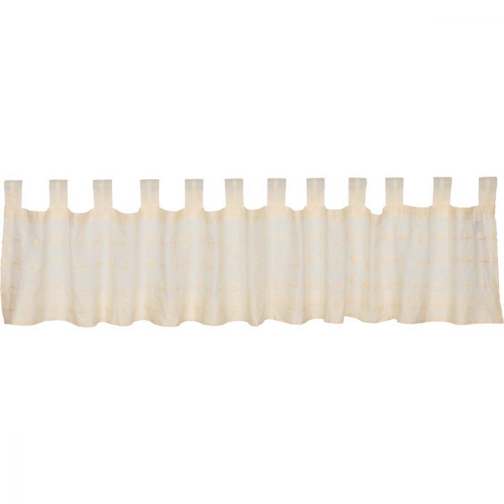 Lightweight and artfully decorated with cross hand-embroidery, the Willow Creme Valance 16x90 accentuates your decor with a touch homemade charm. Tab top style rod pocket with a neutral tone and breezy fabric complement any space.