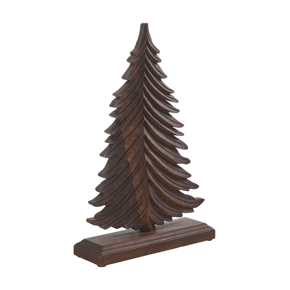- Rustic Winter Fir Tree Design: Features a beautifully carved dark brown fir tree with sweeping boughs and intricate wood-carved branch lines, creating a timeless, rustic look perfect for the holidays.