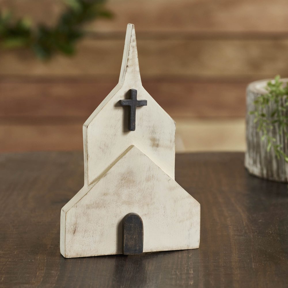 - Religious Decor Essential: The VHC Brands Wooden Block Church, sized at 10x6x1 inches, is a captivating addition to your religious decorations, ideal for your dining room, entryway, or living room.