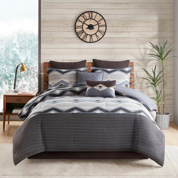 Complete 8-Piece Set: you get a full designer bedding upgrade 1 Comforter; 2 Standard Shams; 2 Euro Shams; 1 Bedskirt; 2 Decorative Pillows, It’s a complete, coordinated look that instantly transforms your bedroom into a modern mountain retreat.