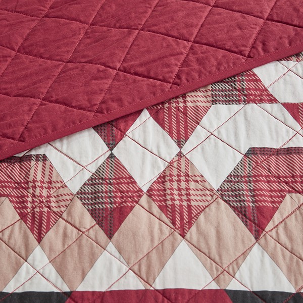 Easily create a cozy cabin look in your bedroom with the Woolrich Compass Quilt Mini Set. This cotton quilt features a large medallion in the center, in red, black, and brown colors, framed by accenting borders, for a charming country look. The solid red reverse complements the pattern on the bed, while end-to-end diamond quilting adds texture and dimension. Coordinating shams also showcase a medallion motif that pairs handsomely with the quilt. Prewashed for comfort and durability, this quilt mini set has 90% cotton filling to provide exceptional warmth and a soft feel. This quilt mini set is machine washable and OEKO-TEX certified, meaning it does not contain any harmful substances or chemicals to ensure quality comfort and wellness.