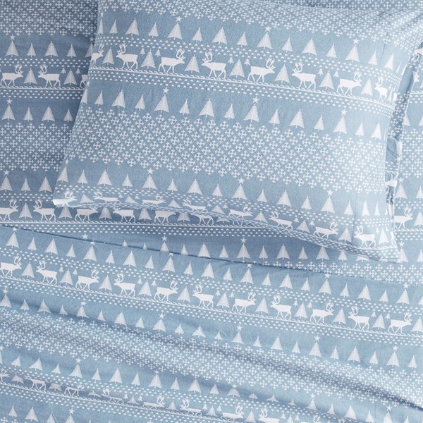 Woolrich Cotton Flannel Sheet Set in Blue Winter Frost, King WR20-2032