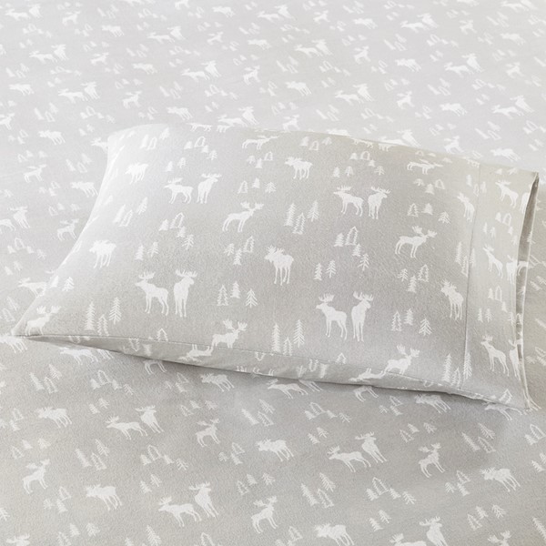 Woolrich Cotton Flannel Sheet Set in Grey Moose, King WR20-2283