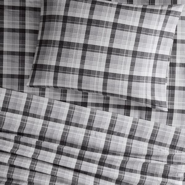 Woolrich Cotton Flannel Sheet Set in Grey Plaid, King WR20-2047