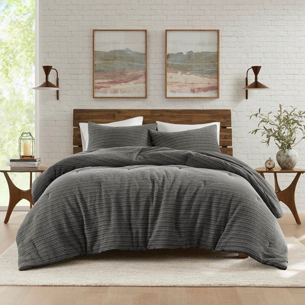 Woolrich Lyon Waffle Washed Comforter Set in Charcoal, Full/Queen WR10-4042