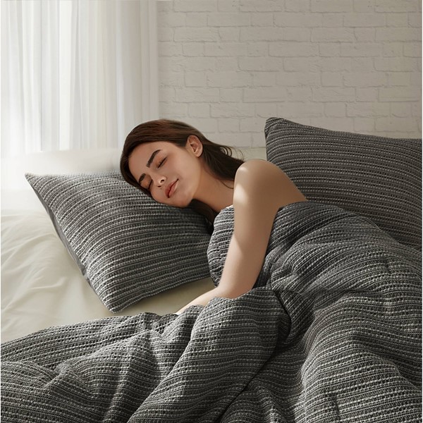 Embrace the cozy elegance of a breathable cotton waffle texture, stone-washed for a lived-in softness and enhanced coziness. The relaxed finish adds a sophisticated vintage touch with a timeless, worn-in charm. Filled with plush polyfill for cloudlike fluff, this comforter delivers exceptional softness and cozy warmth, perfect for snuggling year-round. OEKO-TEX STANDARD 100 Certified for high-quality standards, it’s free from harmful substances, ensuring comfort and wellness. Designed for durability to withstand daily use with ease–simply machine wash cold on a gentle cycle, wash separately, avoid bleach, and tumble dry on low for lasting freshness.