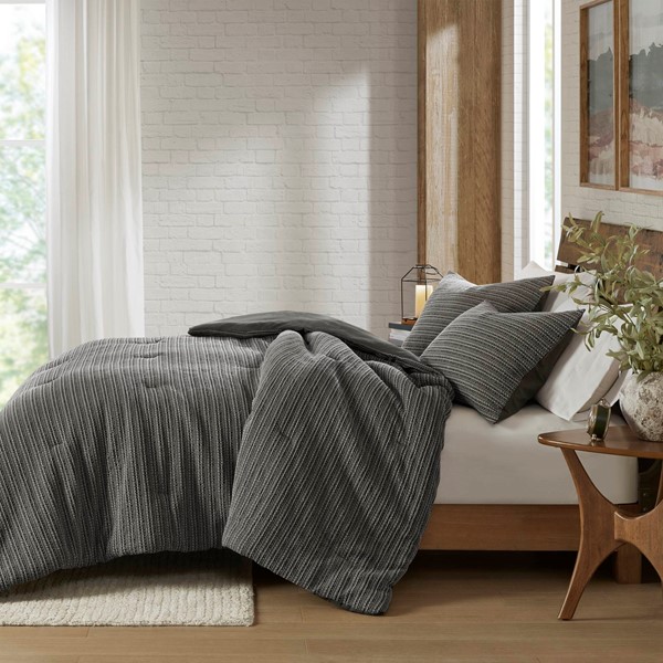 Woolrich Lyon Waffle Washed Comforter Set in Charcoal, King/Cal King WR10-4043