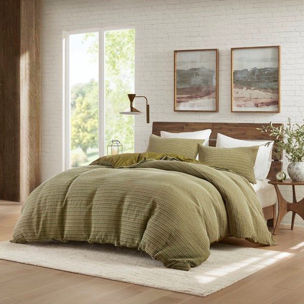 Woolrich Lyon Waffle Washed Duvet Set in Green, Full/Queen WR12-4040