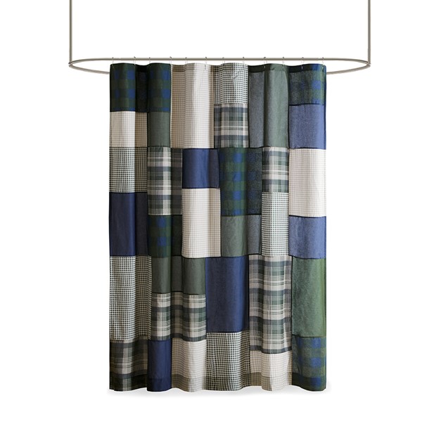 Create a cozy cabin look in your bathroom with the Woolrich Mill Creek shower curtain. This 100% cotton shower curtain features a pieced plaid patchwork design in green, navy, and taupe hues for an inviting lodge feel, while the light weight cotton base fabric provide a naturally, soft and airy touch. Machine washable for easy care, this casual style shower curtain measure 72″x72″ and is finished with 12 button holes at the top making it easy to hang; hooks, rod, and a water repellant liner are not included and will need to be purchased separately. Complete the look with coordinating bedding, available and sold separately.