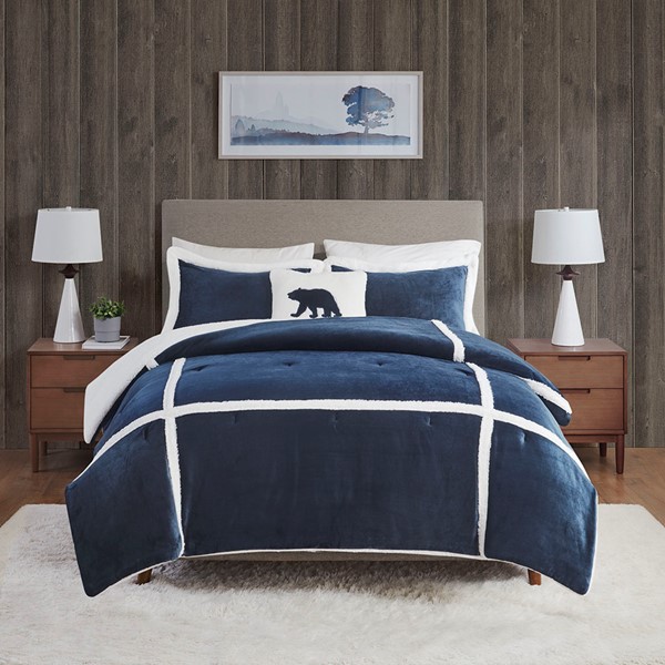 Woolrich Orlen Plush to Sherpa Comforter Set in Navy, Twin WR10-3842