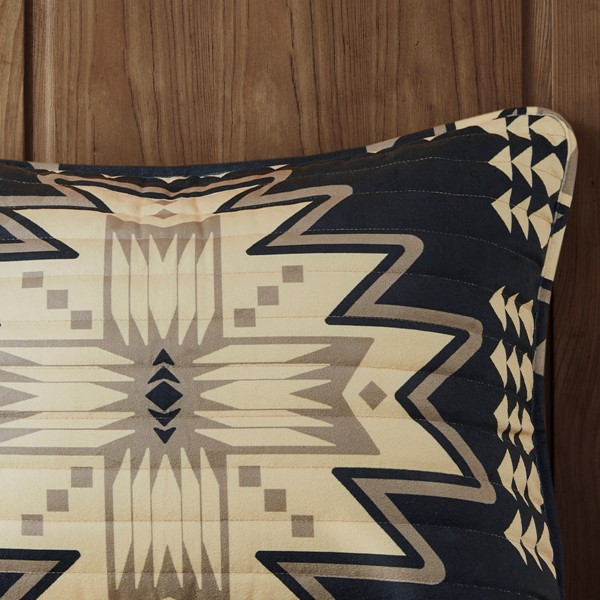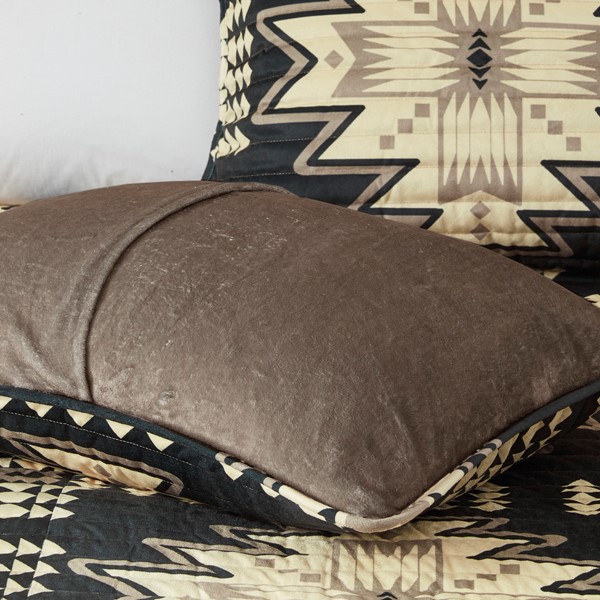 The Woolrich Sierra Print Plush Quilt Set offers a warm and inviting lodge update to your bedroom. This plush comforter features a tan and black over-scaled Aztec print with 2 coordinating shams to create a charming cabin look. Both sides of the quilt have soft and cozy plush that provides year-round warmth and comfort. Machine washable for easy care, this plush quilt set is OEKO-TEX certified, meaning it does not contain any harmful substances or chemicals to ensure quality comfort and wellness. Items in the set may come in a rolled or compressed packaging, which will need to be fluffed up or steam ironed before use to remove wrinkles.