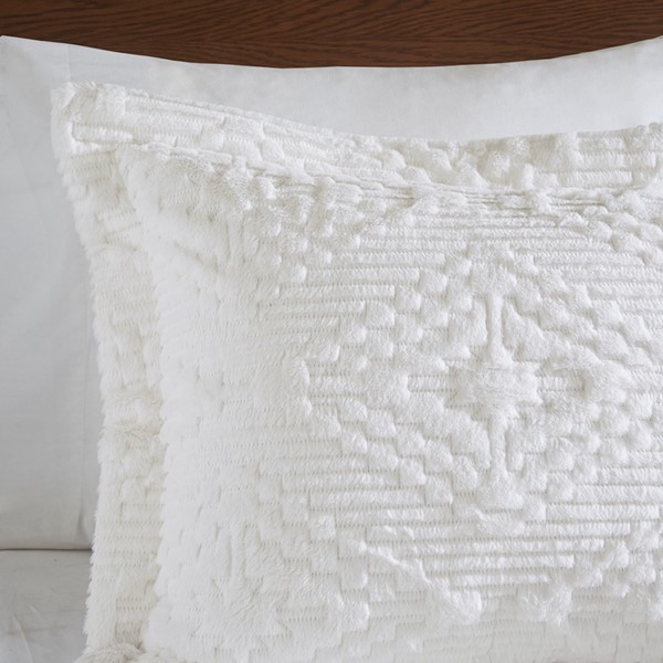 Sham: Polyester embroidered long fur on face polyester solid softspun on reverse