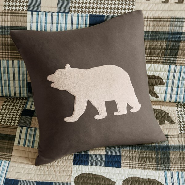 The Woolrich Twin Falls 4 Piece Quilt Set offers a fresh and handsome look to your space. This oversized quilt sports plaid prints and a bear motif in brown and blue hues. The solid reverse complements the top of the bed. Matching shams echo the design of the quilt, while a decorative pillow features an applique animal on the face completing the ensemble. Machine washable, this quilt set transforms your bedroom into a relaxing cabin retreat.