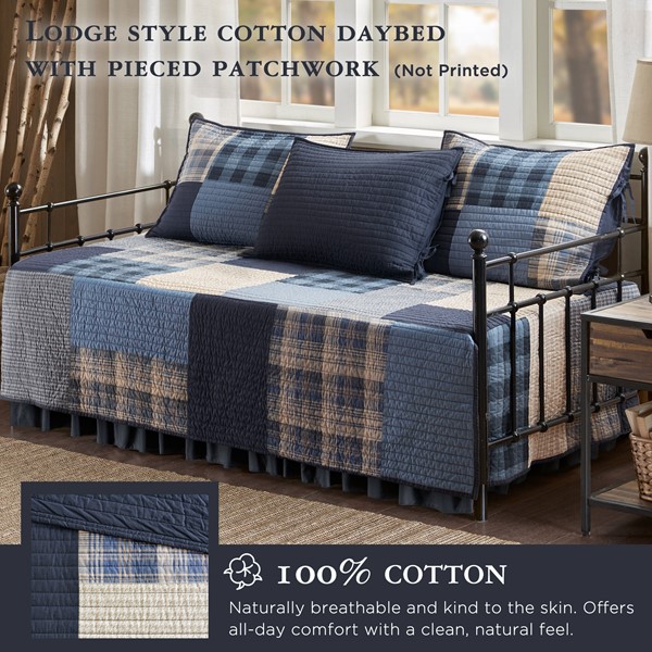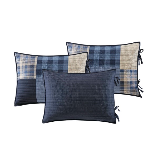 Classic Coastal Farmhouse Charm Inspired by timeless Modern Farmhouse aesthetics, this set features a calming patchwork of navy, denim blue, and crisp white. The classic design brings a peaceful, welcoming, and textural vibe to your guest room, home office, or sunroom.