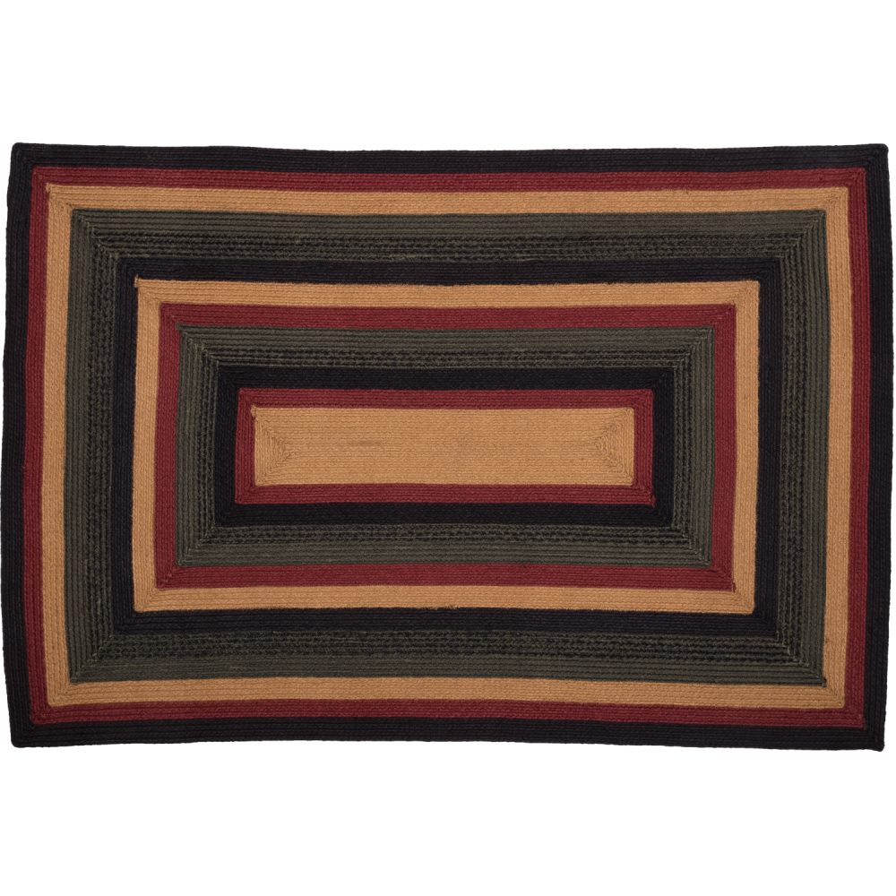 Answer the call of the wild with the rugged yet stylish Wyatt Jute Rug. This 48x72 rustic rug features beautiful concentric braids of black, crimson, dark tan, and army green jute that completes the look of your cabin, lake house, or lodge inspired home. Our rectangular textured rug adds an enduring design touch while creating a warm, cozy atmosphere. Place this 100% jute indoor rug in the kitchen, dining room, living room, entryway, bedroom, or any room to add welcoming, earthy simplicity to a space.