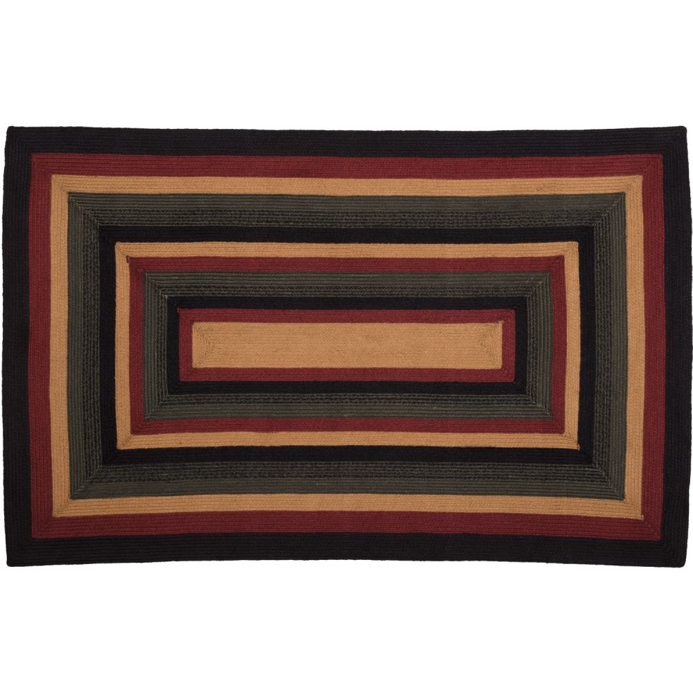 Answer the call of the wild with the rugged yet stylish Wyatt Jute Rug. This 60x96 rustic rug features beautiful concentric braids of black, crimson, dark tan, and army green jute that completes the look of your cabin, lake house, or lodge inspired home. Our rectangular textured rug adds an enduring design touch while creating a warm, cozy atmosphere. Place this 100% jute indoor rug in the kitchen, dining room, living room, entryway, bedroom, or any room to add welcoming, earthy simplicity to a space.