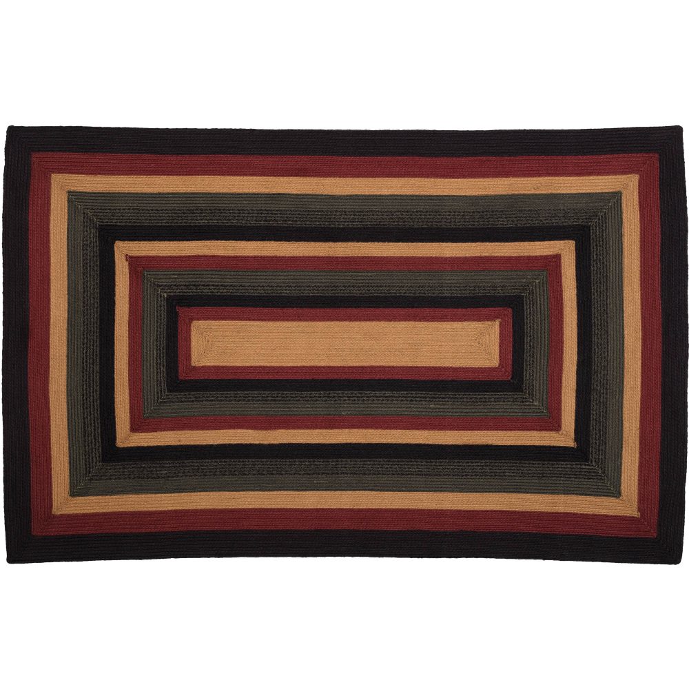 Answer the call of the wild with the rugged yet stylish Wyatt Jute Rug. This 60x96 rustic rug features beautiful concentric braids of black, crimson, dark tan, and army green jute that completes the look of your cabin, lake house, or lodge inspired home. Our rectangular textured rug adds an enduring design touch while creating a warm, cozy atmosphere. Place this jute blend indoor rug in the kitchen, dining room, living room, entryway, bedroom, or any room to add welcoming, earthy simplicity to a space.
