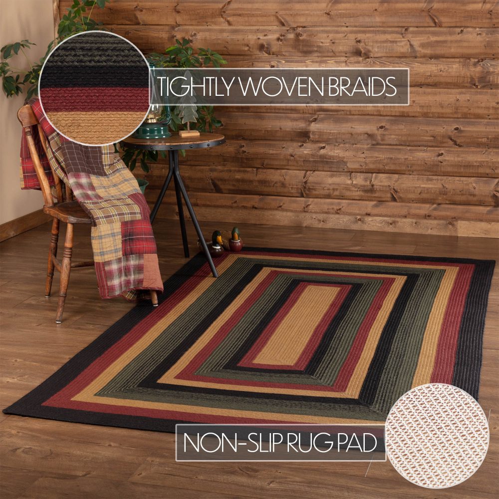 - RUSTIC DECOR: The unique texture of the jute material warms your floor with rugged design. This rustic area rug adds a cozy element to your home with rectangular dyed jute braids of black crimson, and army green.