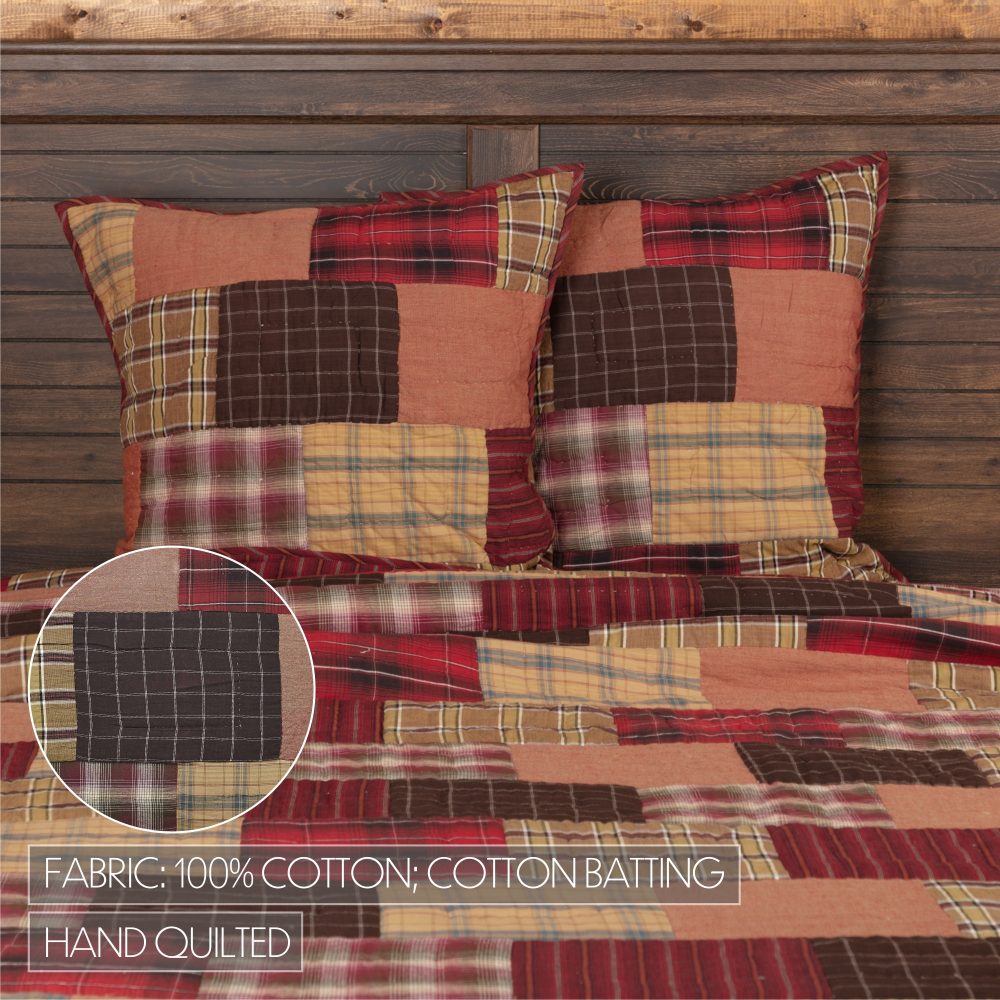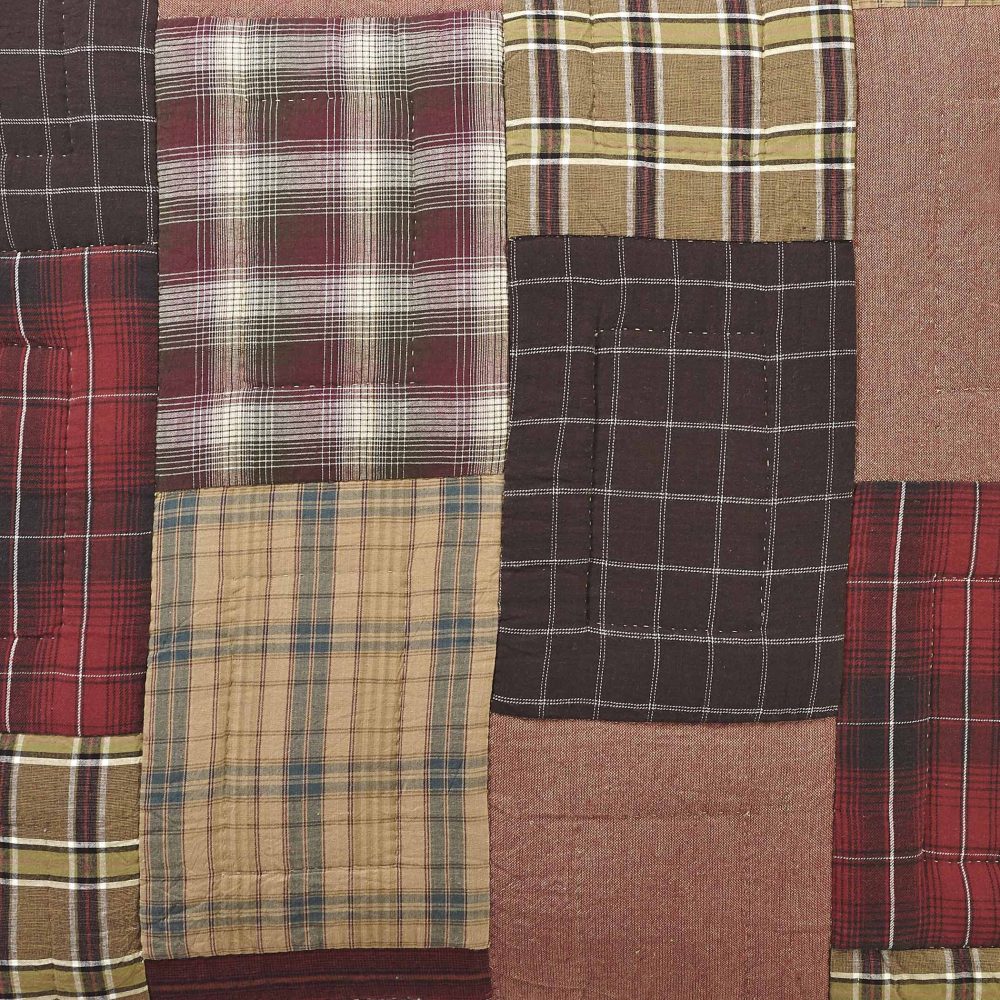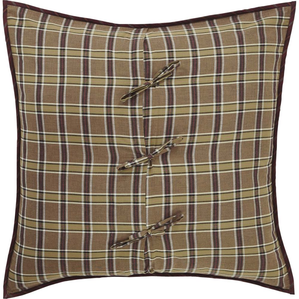 Add a colorful, cozy design to your rustic country decor with bright shades of crimson red, khaki tan, moss green and espresso brown. The Wyatt Quilted Euro Sham measures 26x26 inches and features a mix of traditional plaid patterns in a unique patchwork of off-center, rectangular blocks for a primitive, relaxed feel. Add it to bedding, couches or chairs for warmth and style that transforms your space with a timeless vintage cabin look. Machine washable and iron safe. Includes tie-style closures for easy removal and reverses to a simple moss green plaid. Does not include fill pillow.