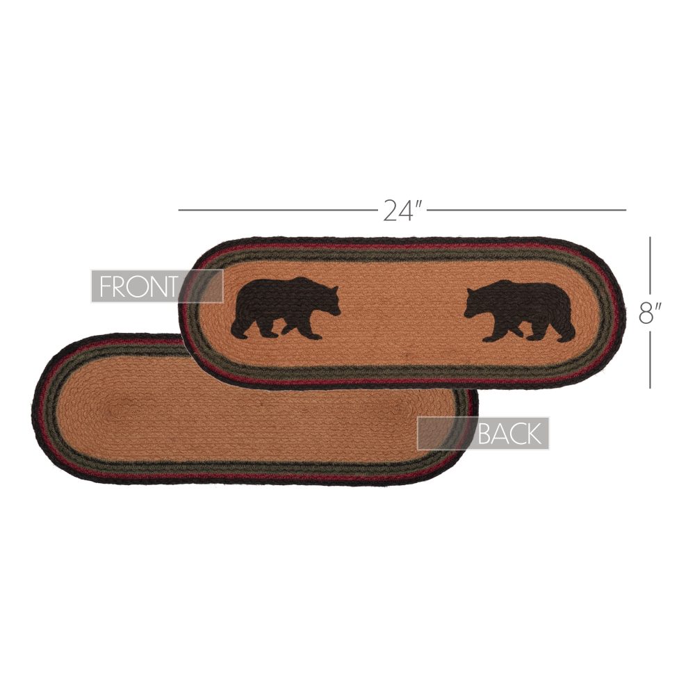 Take your table to bear country with adventurous colors and classic texture. The Wyatt Jute Runner includes one table runner measuring 8x24 inches made from a premium Jute blend. The rich texture of braided jute is given a bold, rustic twist with inky black, army green and crimson red forming a frame for a central stenciling of two black bears for wild, mountain country charm. Complete your tabletop decor with other pieces from the Wyatt Collection by VHC for rustic country style.