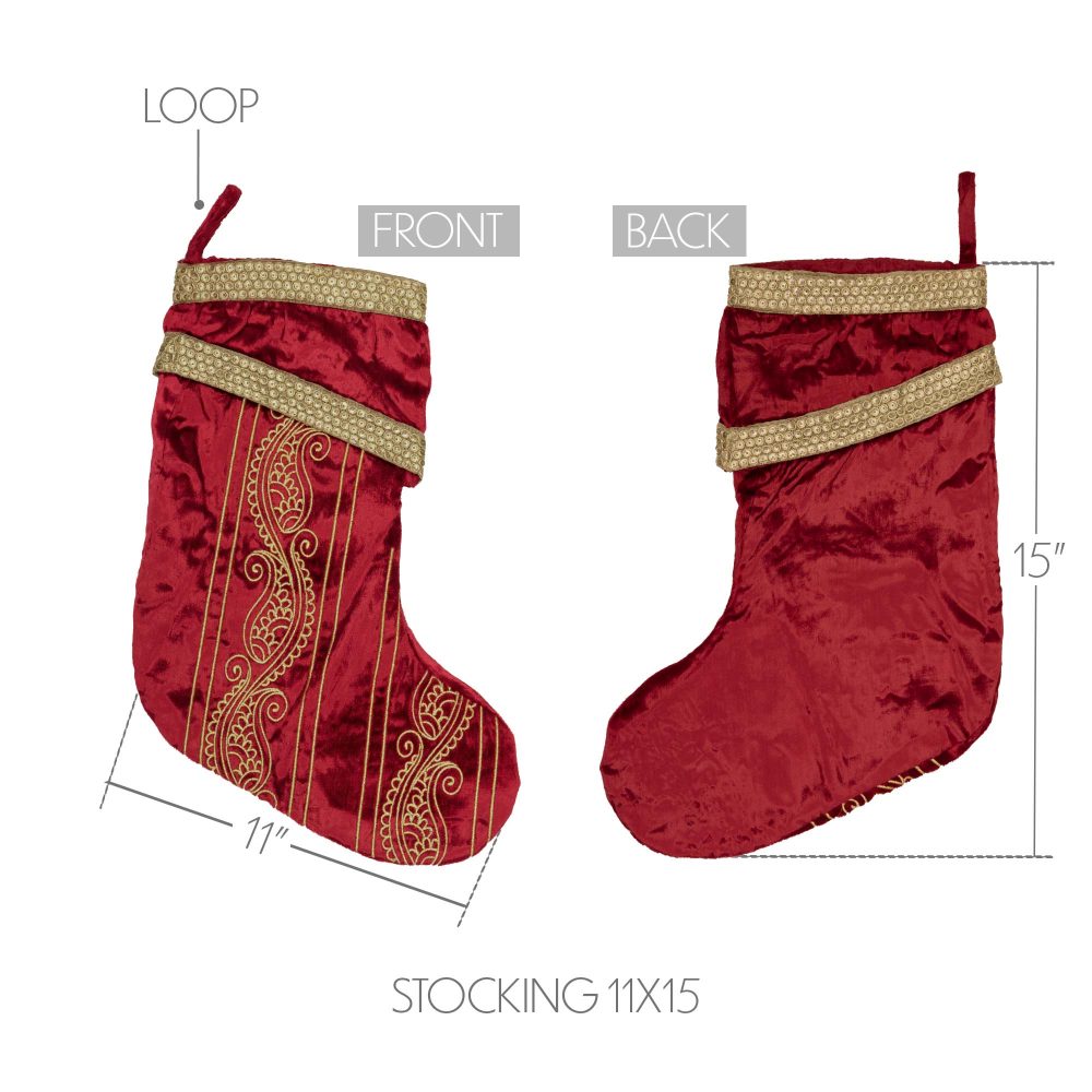 This holiday season, get into the spirit with this elegant Yule Stocking in country red and antique gold. This 11x15" Christmas stocking hangs easily from a fabric loop, and when you want a change of pace, simply reverse the stocking for a more simple design. Made to last, the Yule stocking is the perfect farmhouse decor item for your holiday hearth.