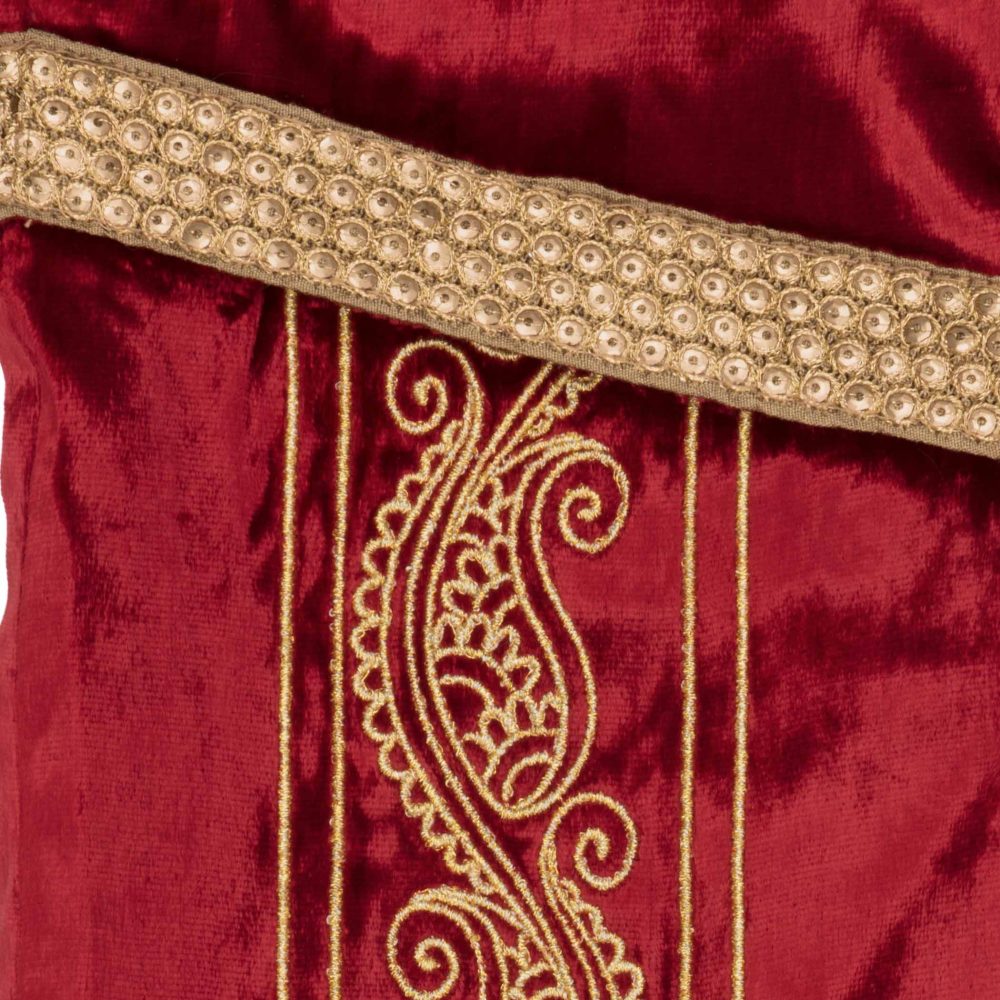 - FARMHOUSE DESIGN Deep country red viscose velvet with vertical gold paisley embroidery