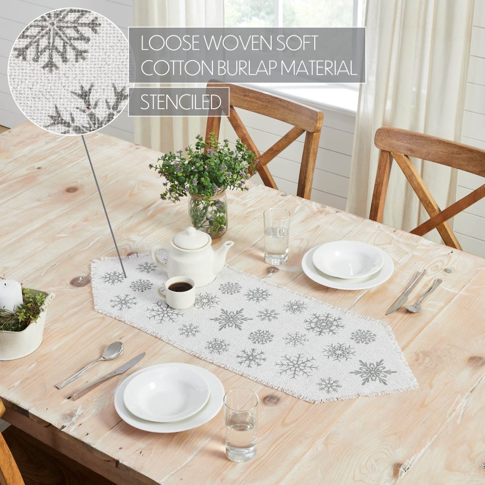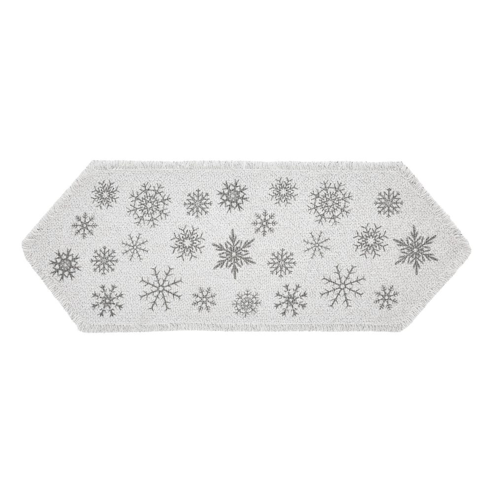 - SNOWFLAKE TABLE RUNNER: Includes one 12×36 inch holiday table runner constructed with a cotton burlap with metallic accents. Features a unique hexagonal shape.