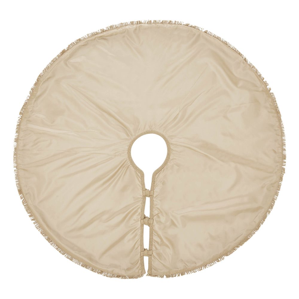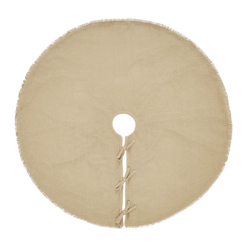Add rustic style to your Christmas traditions with the Yuletide Burlap Tan Tree Skirt. The round tree skirt features a 36 inch diameter. A warm tan base constructed with a soft cotton burlap will add simple, sophisticated style for a perfect farmhouse Christmas look. A simple fringed edging adds a textured element to the design. The classic Christmas tree skirt is made for yearly use with a simple tie-style closure. Pair with coordinating items from the Holiday Collection at VHC Brands for a complete, classic country holiday look.