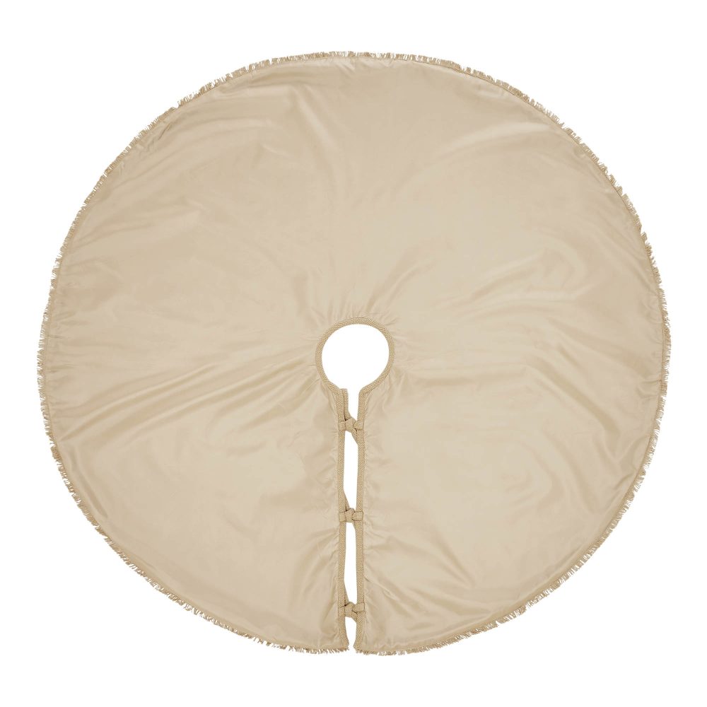 Add rustic style to your Christmas traditions with the Yuletide Burlap Tan Tree Skirt. The round tree skirt features a 48 inch diameter. A warm tan base constructed with a soft cotton burlap will add simple, sophisticated style for a perfect farmhouse Christmas look. A simple fringed edging adds a textured element to the design. The classic Christmas tree skirt is made for yearly use with a simple tie-style closure. Pair with coordinating items from the Holiday Collection at VHC Brands for a complete, classic country holiday look.